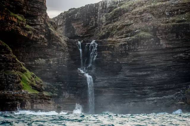 Waterfall bluff瀑布崖,在圣约翰港东北面50km的一处断崖,因为海底地形呈坡状,海豚群容易将沙丁鱼赶上浅海围猎,所以这里是BBC自然大事件、 国家地理等生态大片拍摄沙丁鱼最精彩镜头的拍摄地。