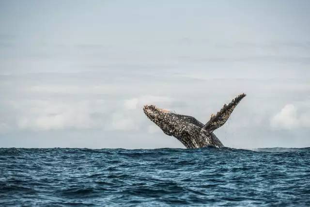 第一个是垂直上升,大翅鲸前缘具不规则的瘤状突起,突然从海底破水而出,高高上跃,然后身体优雅的向后弯曲,然后砸落水面时,溅起巨浪。