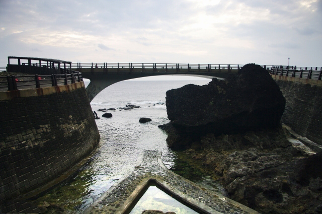 马蹄桥位于绿岛的西南海岸,从南寮渔港往南出发,过了龟湾鼻与隧道后,就可以看到笔直的马蹄桥,再往前探查,会发现往内还有弯成接近半圆的内桥,内桥沿着马蹄岭断崖建造,由于状似马蹄而得名。每年四五月,可在山壁看到台湾野百合的盛开;平日可在桥上观浪,见识马蹄桥的海岸景观。