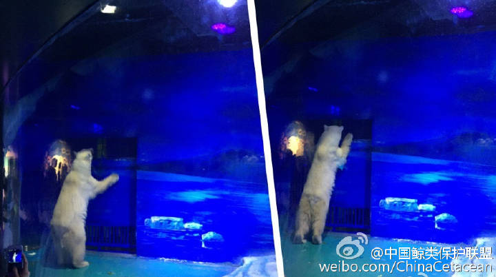 (图片来自网友) 陆生动物况且如此,海洋哺乳动物的福利就更加无法得到保障了。目前得到的信息是,正佳极地海洋世界购买了5头俄罗斯的野捕白鲸,均是幼年。这些家庭连结紧密的动物,被为了一己私利的场馆从家人族群身边夺走,一辈子不见天日,只能表演娱乐观众直到死去。